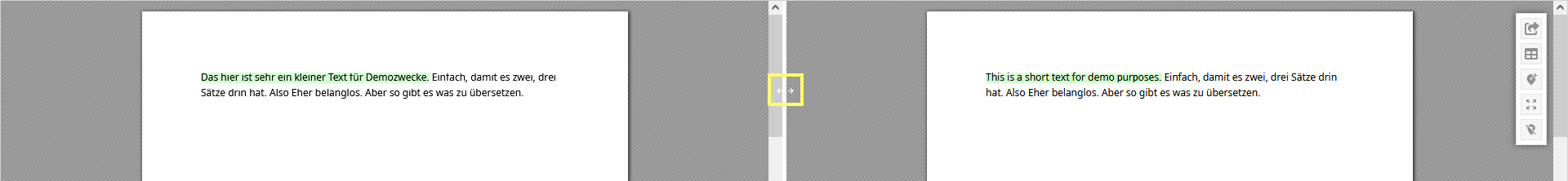 In addition to the zoom options for the source and target Visual files, the window height of both previews can also be changed. To do this, move the cursor over the horizontal border between the Visual display and Editor until the cursor changes to an arrow pointing upwards and downwards.